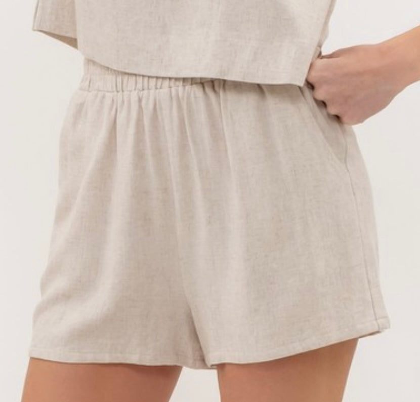 Linen Blend High Waist Shorts - Natural